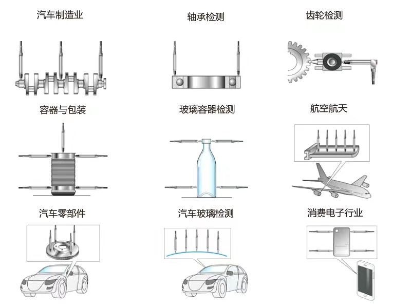 行業(yè)應用:主要應用騎車零部件、軸徑、內圓外圓跳動、端跳動等產品的快速檢測。
