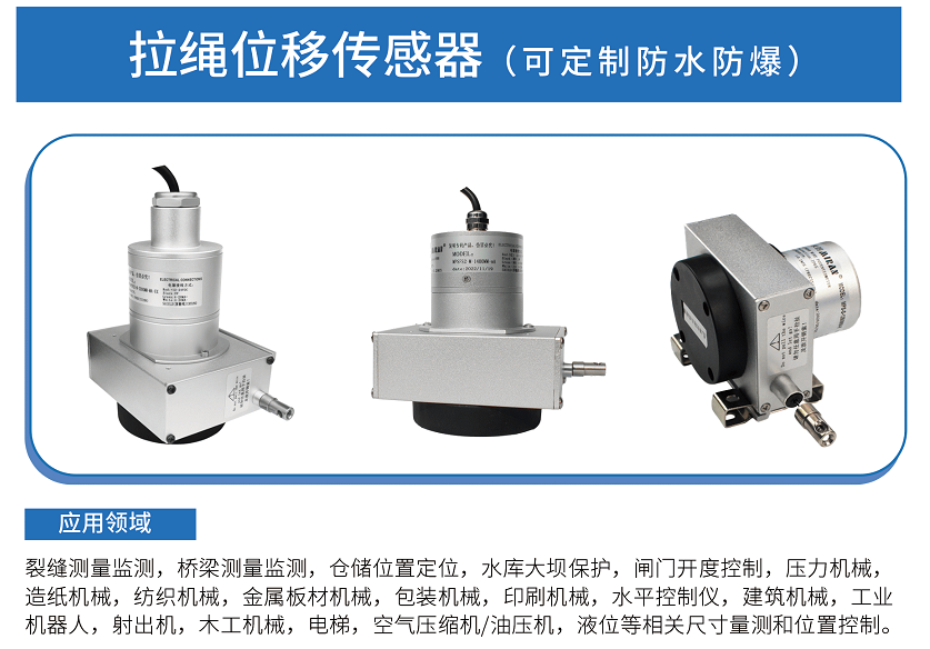 拉繩位移傳感器又稱拉繩裂縫計(jì),其本身具有安裝方便、高精度、高穩(wěn)定性的特點(diǎn)(特殊場(chǎng)景可定做防水處理)被廣泛應(yīng)用于?建筑工程中。