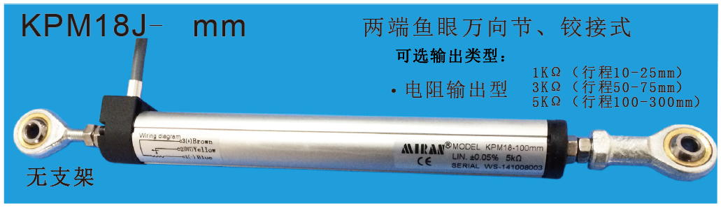 • KPM18小型鉸接式直線位移傳感器,工作量程l:0-300mm