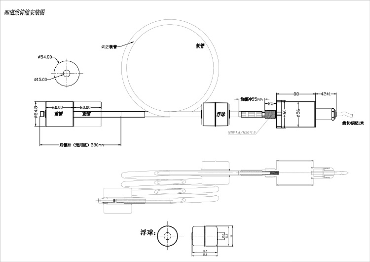 四、MR磁致伸縮液位傳感器安裝尺寸圖(隔爆):
