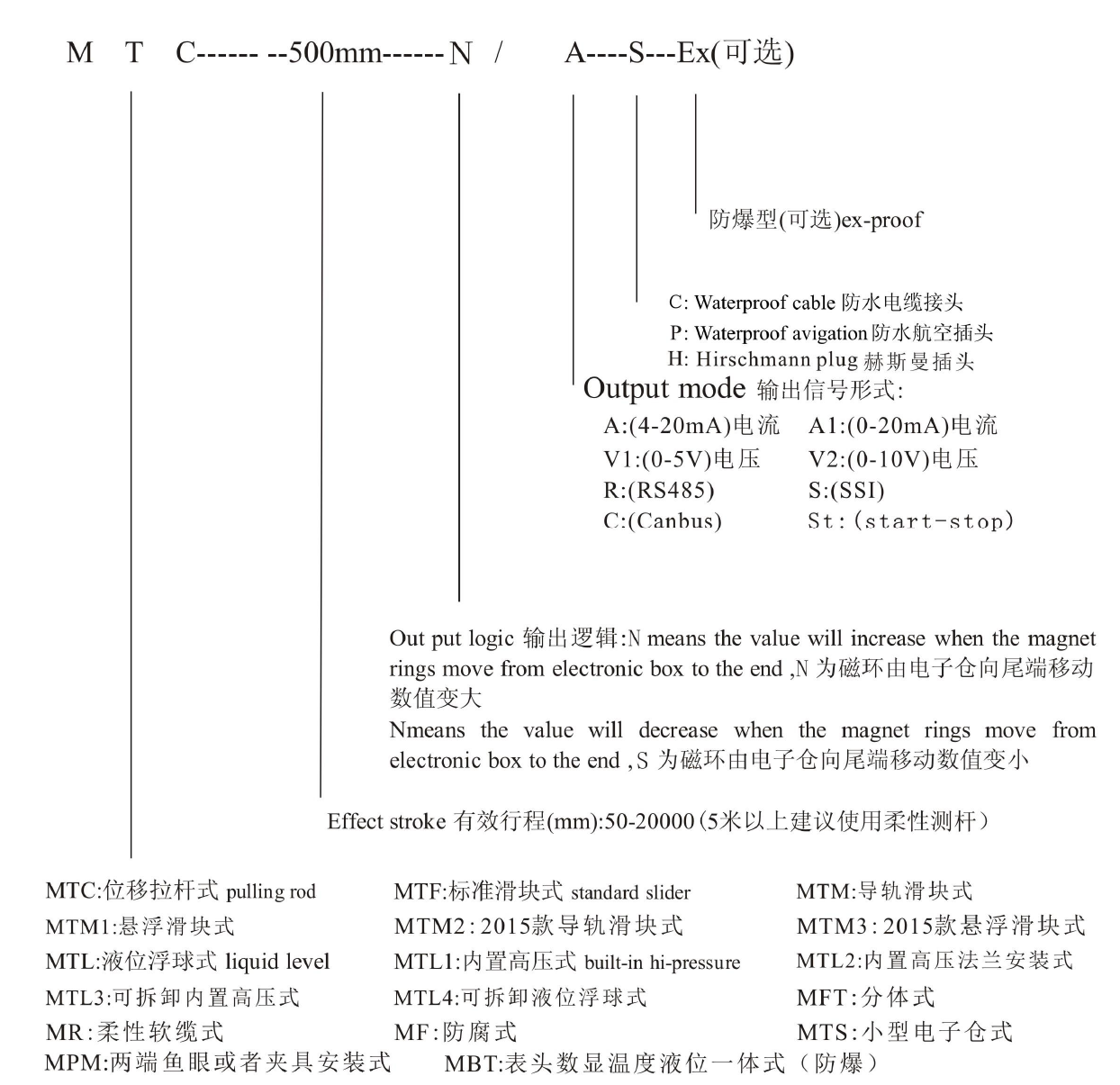 MR磁致伸縮位移/液位傳感器的數(shù)字信號輸出接線方式: