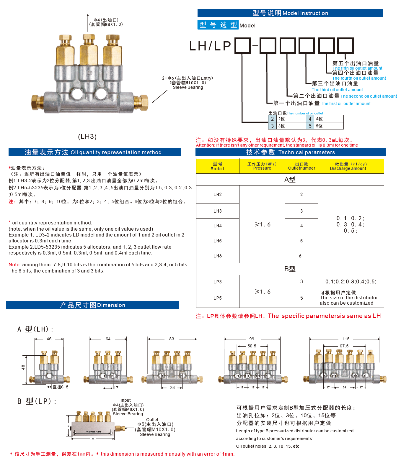 Example 1: LD3-2 indicates LD model and the amount of 1 and 2 oil outlet in 2allocator is 0.3ml each time.