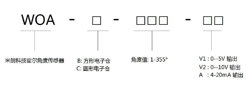 四、WOA-B霍爾角度傳感器產(chǎn)品命名規(guī)則: