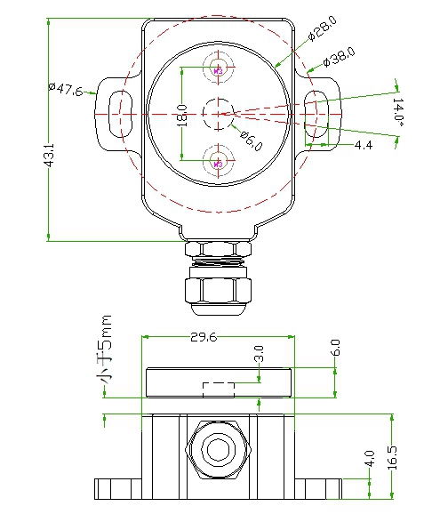 五、WOA-B霍爾角度傳感器產(chǎn)品安裝尺寸圖: