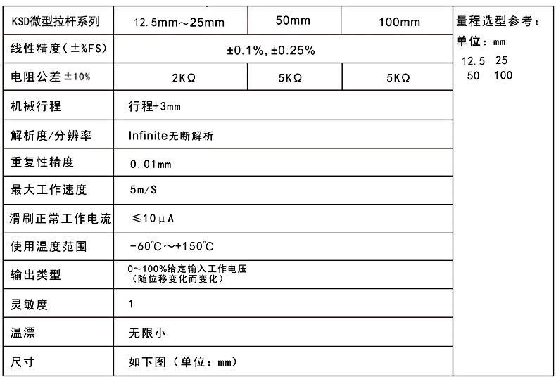 二、KSD直線電位器/直線位移傳感器13FLP技術(shù)參數(shù):