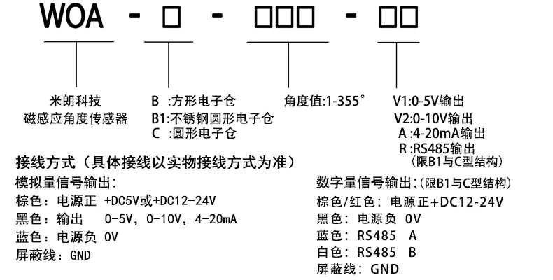 磁感應(yīng)角度位置傳感器傳感器選型指導(dǎo)與接線方式: