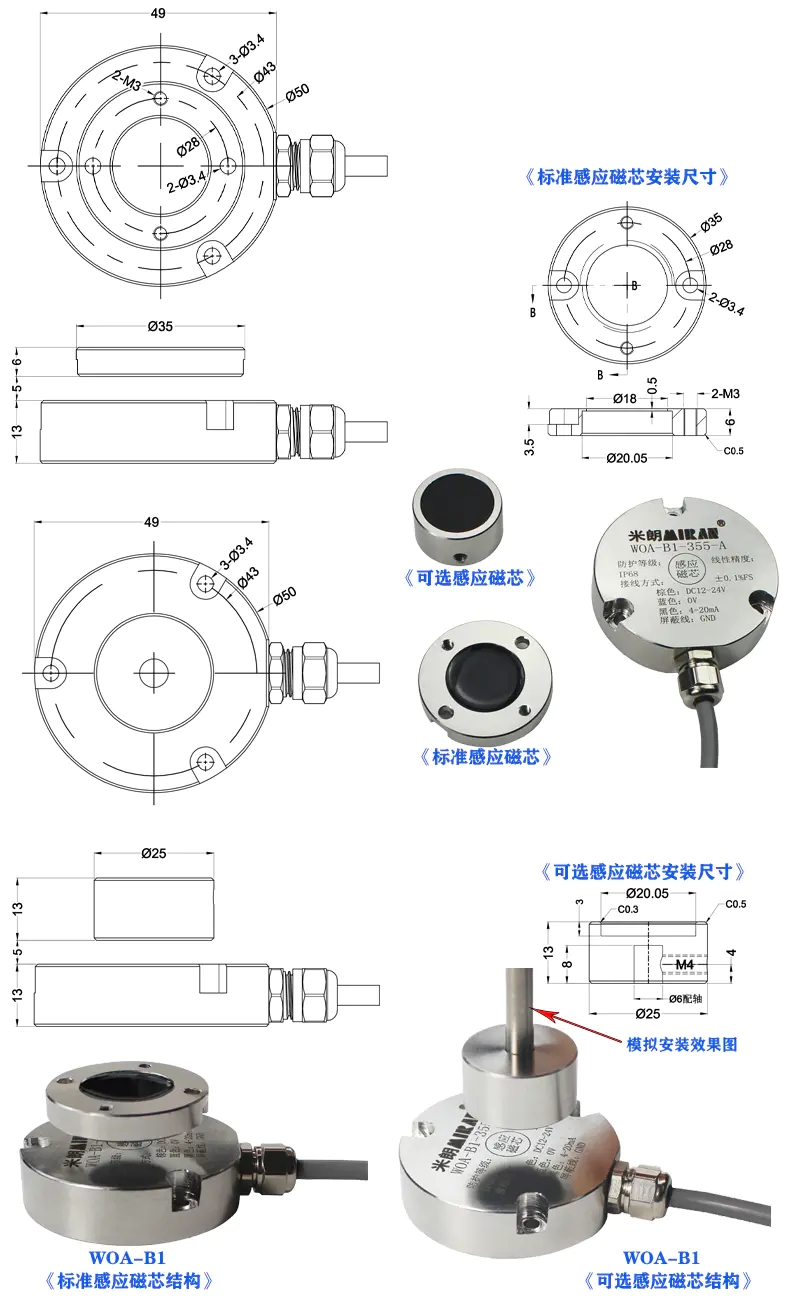 米朗科技WOA-B1系列角度傳感器采用磁感應(yīng)原理(內(nèi)部非接觸式)測(cè)量角度,具有無(wú)觸點(diǎn)、長(zhǎng)壽命、高分辨、高頻響、低溫漂、優(yōu)線性、防水、防塵、耐振抗沖、抗干擾等特點(diǎn)。廣泛應(yīng)用于水、油、氣、振動(dòng)、沖擊等多種惡劣工業(yè)環(huán)境中。