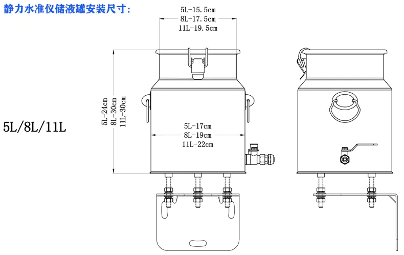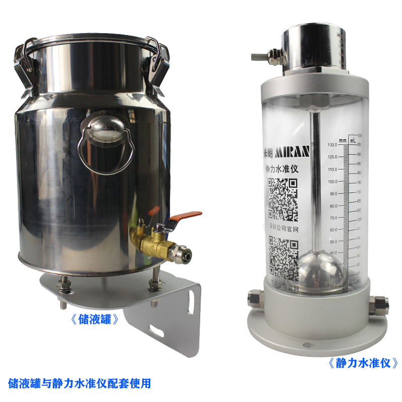 儲液罐需與磁致伸縮式靜力水準(zhǔn)儀配套使用,儲液罐全201不銹鋼材質(zhì),美觀大方,容量5L、8L、11L可供選擇,也可接受非標(biāo)定制。