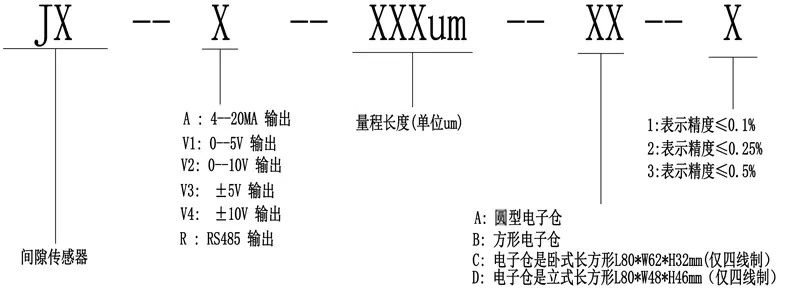 間隙傳感器特點:測量范圍大,分辨率高,重復性好,內置線圈無滑動觸點,使用壽命長,外配變送器可輸出信號 4-20mA,0-5V、0-10V、±5V、±10V、RS485。