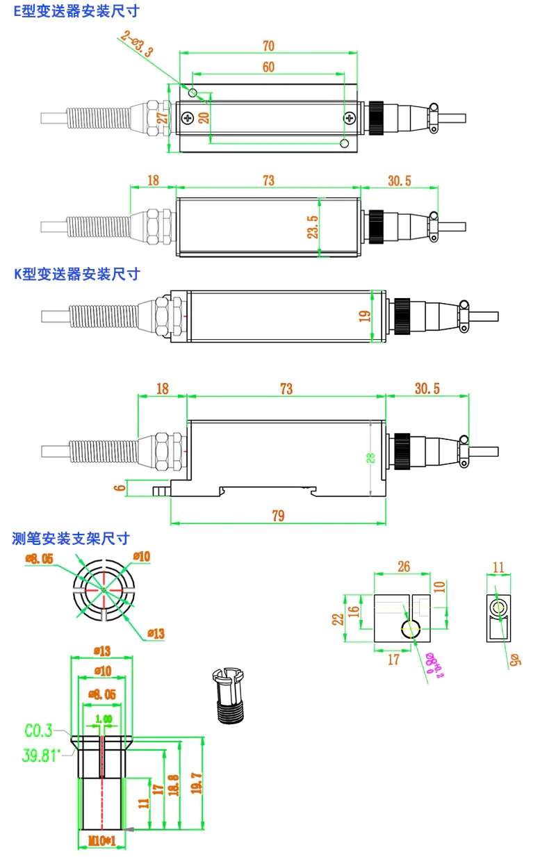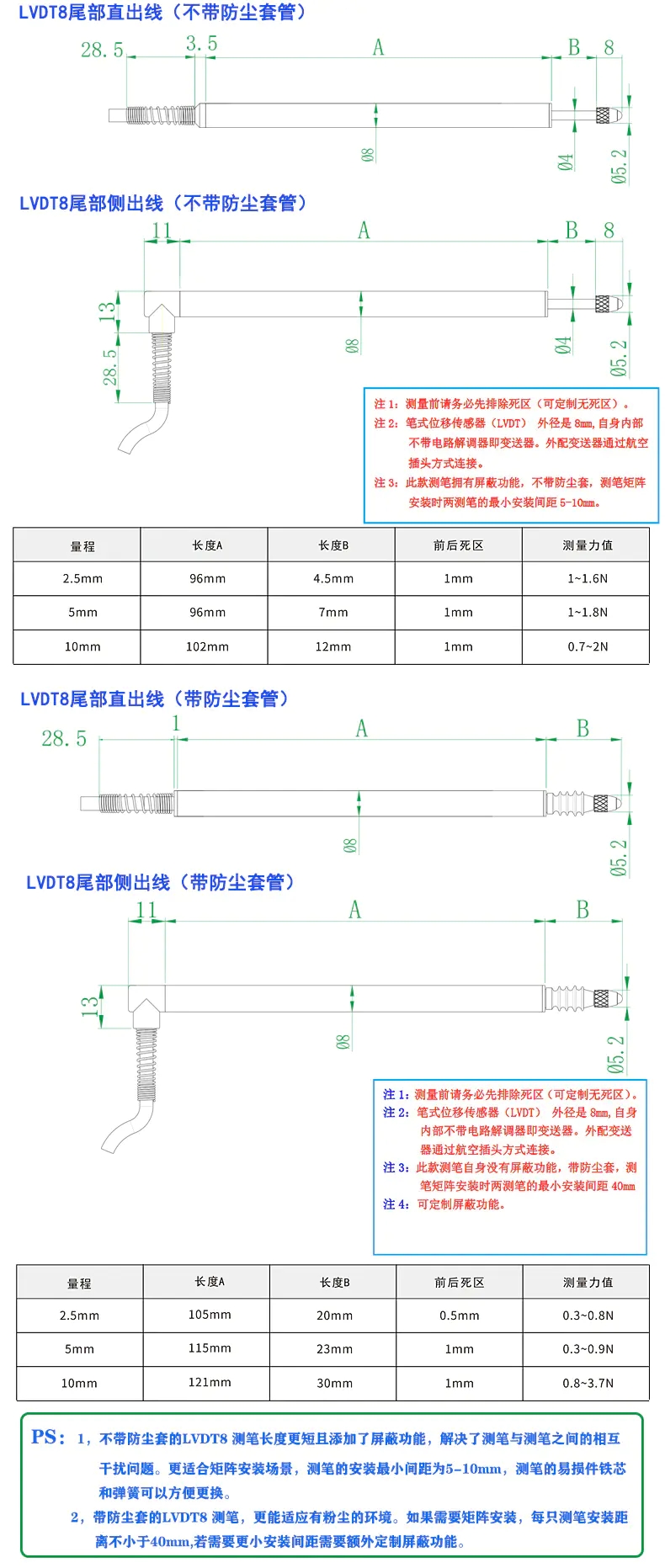 1.外徑Φ8mm筆形回彈式位移傳感器,