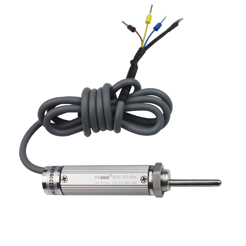 KSN自復(fù)位式位移傳感器(別名:電阻尺,電子尺,電位器,位移傳感器)原理:電位計(jì)原理,所有傳感器為位置測(cè)量型,用于調(diào)節(jié)系統(tǒng)(控制系統(tǒng))和測(cè)量系統(tǒng)中,對(duì)位移和長(zhǎng)度進(jìn)行直接測(cè)量,輸出直流電壓信號(hào),也可以通過內(nèi)置或者外置的V/A變送模塊將信號(hào)轉(zhuǎn)換成標(biāo)準(zhǔn)的0-5V、0-10V或者4-20mA直流信號(hào),也可以遠(yuǎn)距離傳輸控制要求。KSN自復(fù)位式位移傳感器(別名:電阻尺,電子尺,電位器,位移傳感器)輸出位移變化:0-100%給定輸入工作電壓(隨位移變化而變化)。