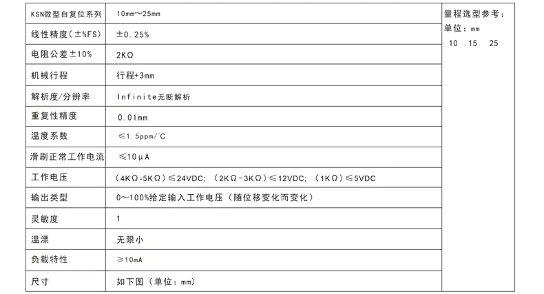KSN自復(fù)位式位移傳感器技術(shù)參數(shù):