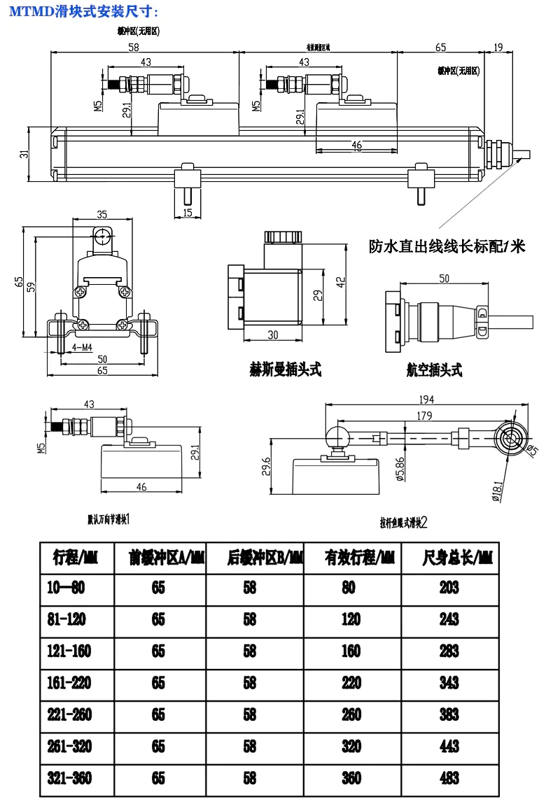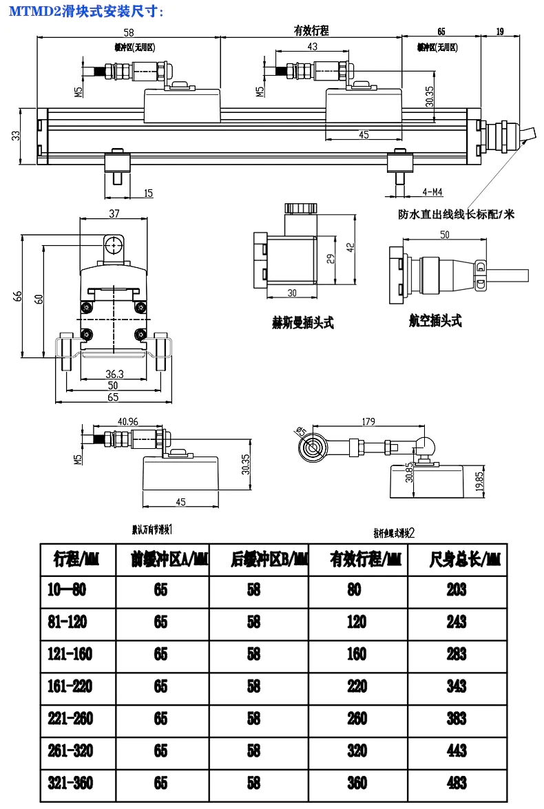 MTMD/MTMD2滑塊式位移傳感器安裝尺寸: