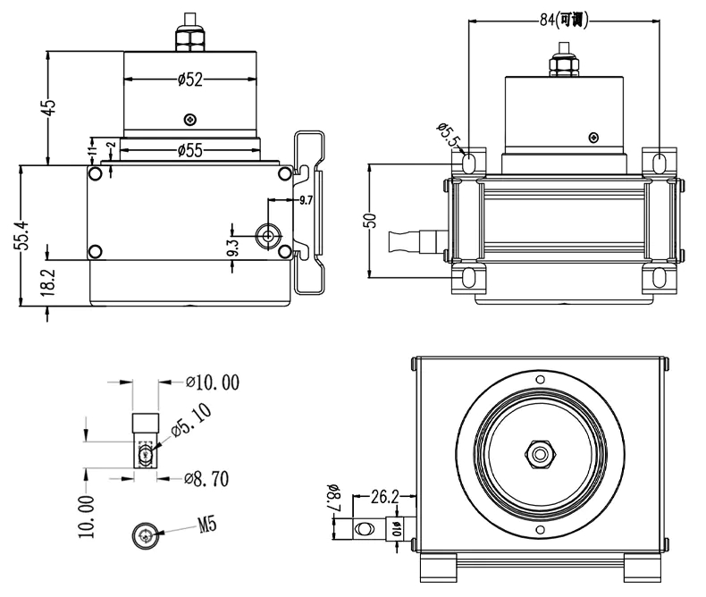 1、利用底部4個固定螺絲孔,依現(xiàn)場及機器安裝空間設(shè)施需要,直接安裝或另加保護或其他機械使用。