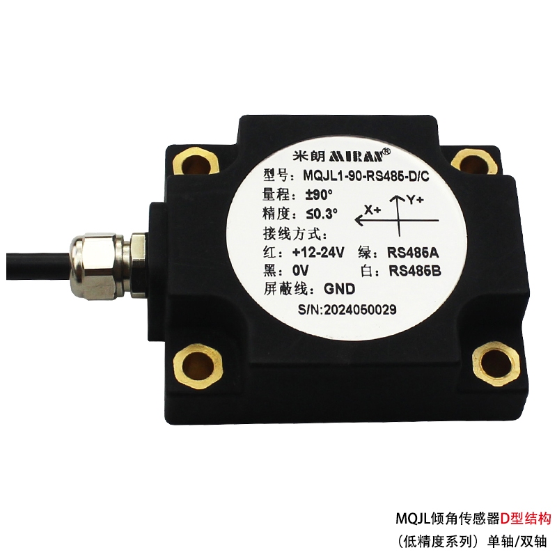 MQJL傾角傳感器低精度系列采用抗干擾平臺設計,集成新型微機械傳感單元,寬溫工作性能,長期工作穩(wěn)定可靠。本產品采用非接觸式原理測量物體的傾斜角度,通過內部的微機械單元測量地球引力所產生的分量來解算出實時傾斜角度,安裝簡單方便,只需固定在被測動作的物體上,不需要固定軸與轉動軸,多種安裝方式,滿足客戶測量需求,是工程機械車輛,農用機械,等工業(yè)設備的理想配件。