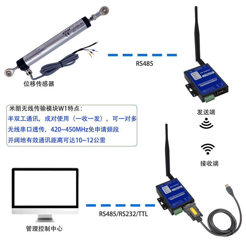 米朗傳感器無(wú)線傳輸模塊W1是一款高性能、低功耗、遠(yuǎn)距離的微功率射頻無(wú)線數(shù)據(jù)收發(fā)電臺(tái),內(nèi)部自動(dòng)擴(kuò)頻計(jì)算和前導(dǎo)CRC糾錯(cuò)處理,不改變用戶的任何數(shù)據(jù)和協(xié)議,采用半雙工透明傳輸機(jī)制,實(shí)現(xiàn)無(wú)線代替的功能。