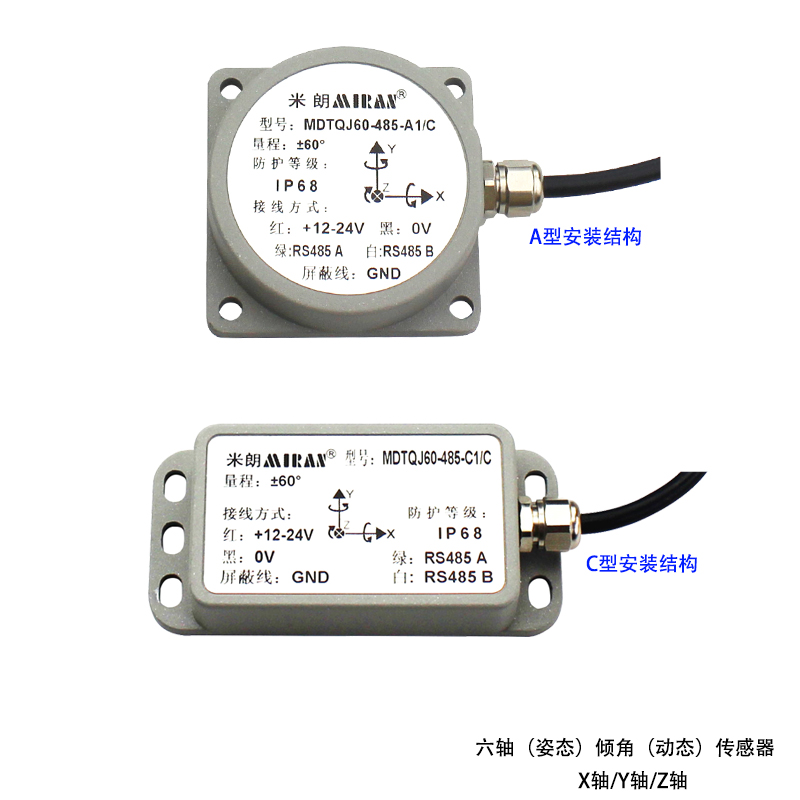 六軸(姿態(tài))傾角(動(dòng)態(tài))傳感器內(nèi)部使用數(shù)字型MEMS動(dòng)態(tài)芯片,可測量運(yùn)動(dòng)載體的姿態(tài)參數(shù)(橫滾、俯仰以及方位角),適用于運(yùn)動(dòng)或振動(dòng)狀態(tài)下的傾角測量。產(chǎn)品內(nèi)置加速度和陀螺傳感器,集成了卡爾漫濾波算法,從而可測量運(yùn)動(dòng)或振動(dòng)狀態(tài)下的載體實(shí)時(shí)運(yùn)動(dòng)數(shù)據(jù)。產(chǎn)品RS485/232/TTL等信號(hào)輸出模式可選,擴(kuò)展性強(qiáng)。