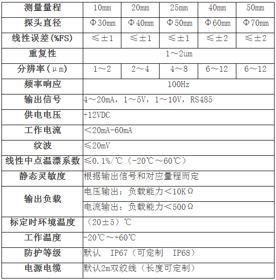 二、ML33YD一體式電渦流位移傳感器技術(shù)參數(shù):