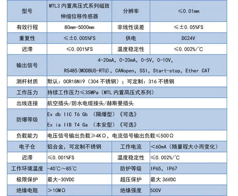 MTL3磁致伸縮位移傳感器標(biāo)準(zhǔn)參數(shù):
