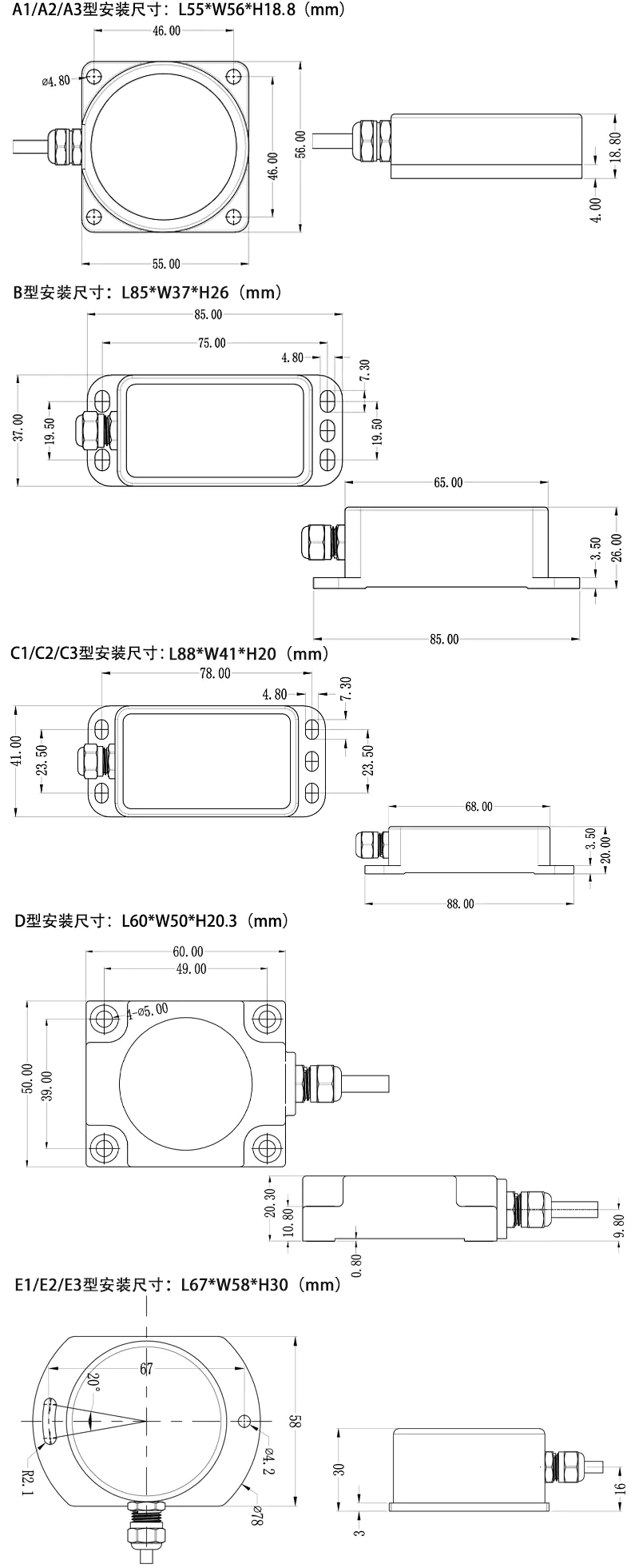 0-15°線性精度≤0.01°;15°-30°線性精度≤0.02°;30°-85°線性精度≤0.03° |