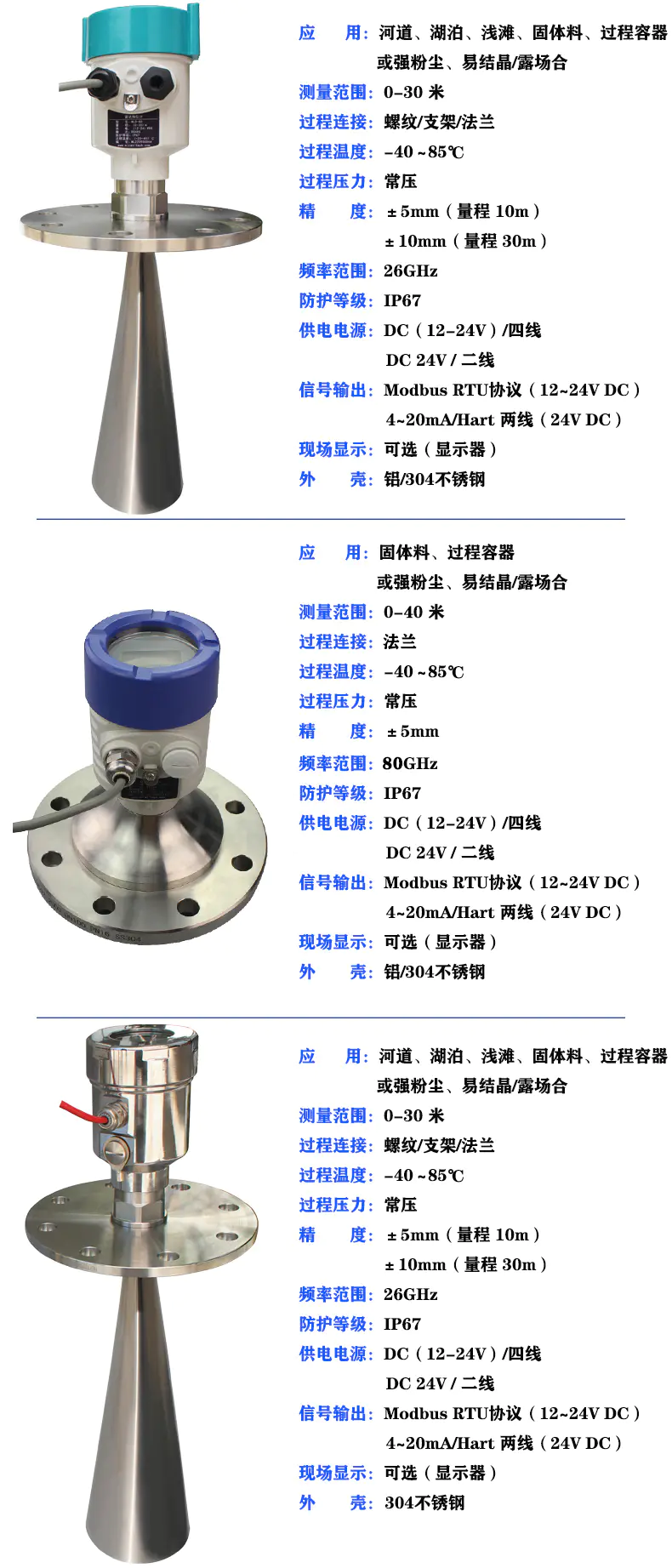 MLD系列雷達物位計特點: