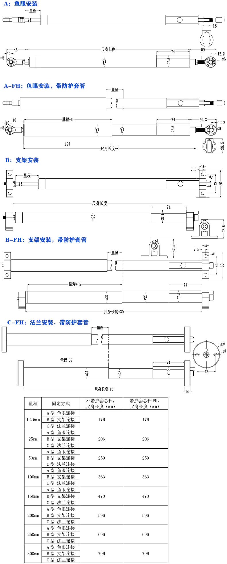 五、振弦式位移傳感器(裂縫計)安裝尺寸 (單位:mm)