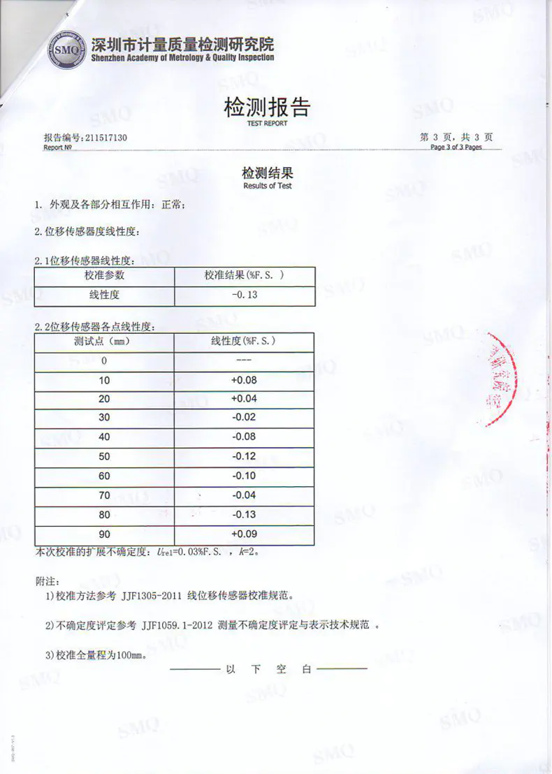 七、振弦式位移傳感器(裂縫計)檢測報告: