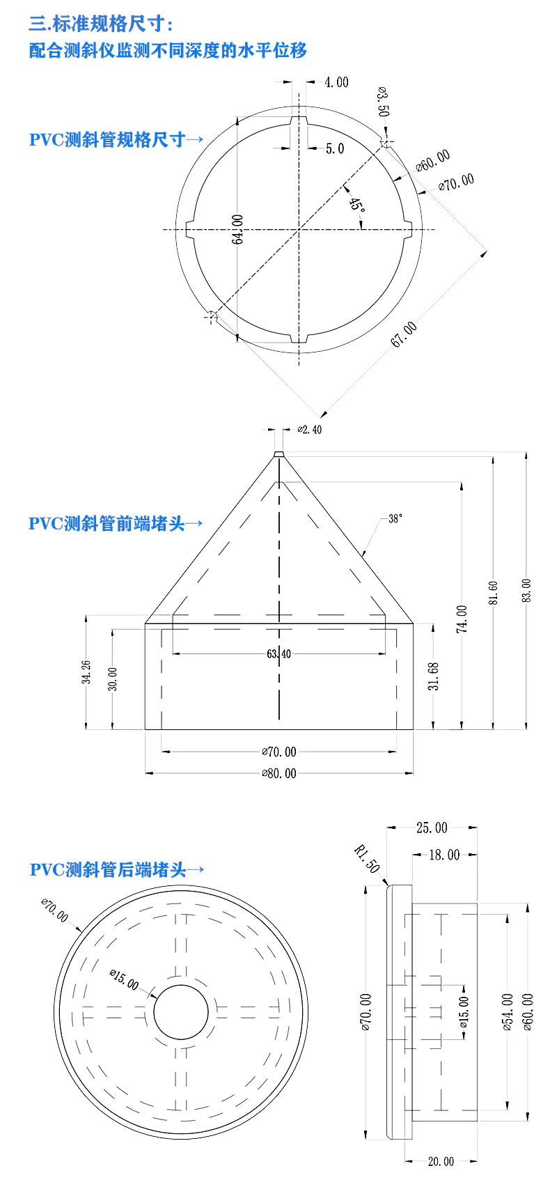 PVC測斜管可與智能固定式測斜儀配套使用,用以觀測堤壩、邊坡、基坑,鐵路等相對水平的雙軸傾斜角度,配合自動實時監(jiān)測系統(tǒng)也可適合于滑坡地質(zhì)活動的長期監(jiān)測等。測斜管與測斜管接頭采用凹凸槽連接,并用自攻螺絲固定,對接更牢靠,密封性能佳,使用更方便。測斜管內(nèi)有供測斜儀探頭定向的90°間隔的導(dǎo)槽,以保證堅固、耐環(huán)境腐蝕及測斜管導(dǎo)槽無扭旋等特點。