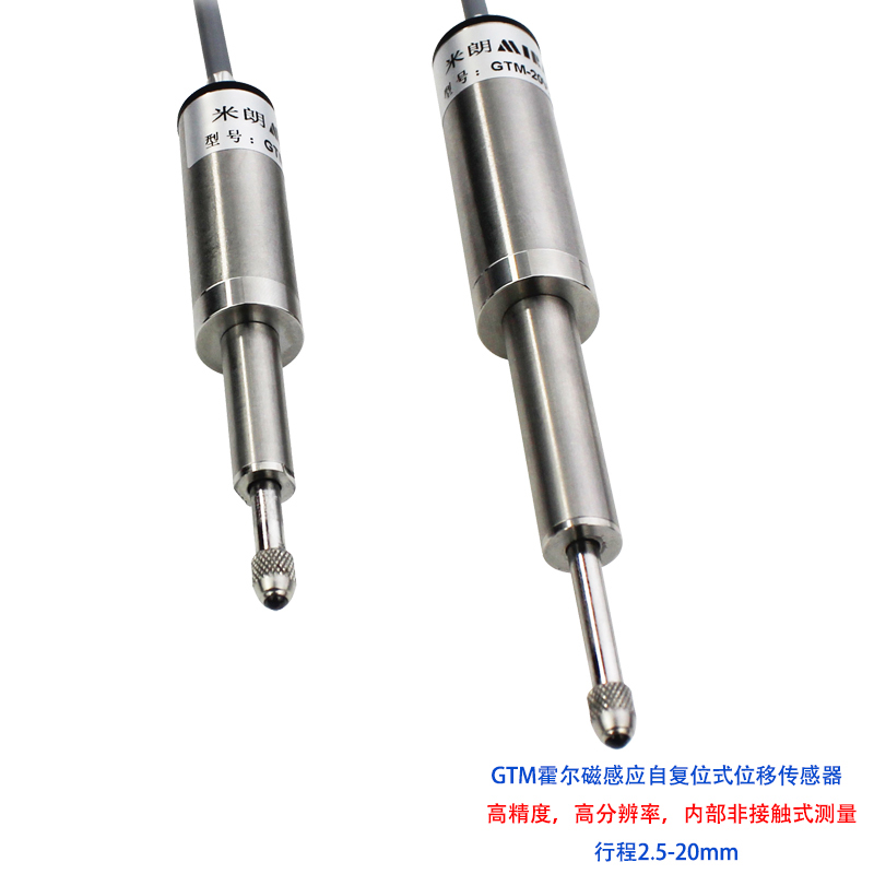 GTM系列微型霍爾磁感應(yīng)自復(fù)位式位移傳感器,是一款非接觸式霍爾磁感應(yīng)傳感器,內(nèi)部采用感應(yīng)磁缸和單片機(jī)芯片處理電路兩部分,內(nèi)部磁缸來(lái)回伸縮,電路中的霍爾磁感應(yīng)編程芯片產(chǎn)生磁性感應(yīng),通過內(nèi)部處理電路輸出不同的模擬量或數(shù)字量信號(hào),輸出信號(hào)的大小值與實(shí)際位移距離呈正比例線性關(guān)系。
