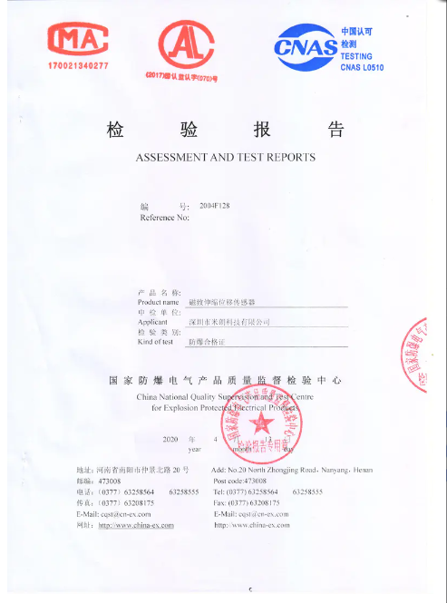 防爆型磁致伸縮位移/液位傳感器檢驗報告