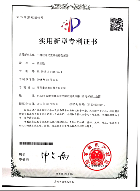 拉繩直線位移傳感器證書Product introduction 您現(xiàn)在的位置:首 頁 > 產(chǎn)品展示 > 產(chǎn)品詳情