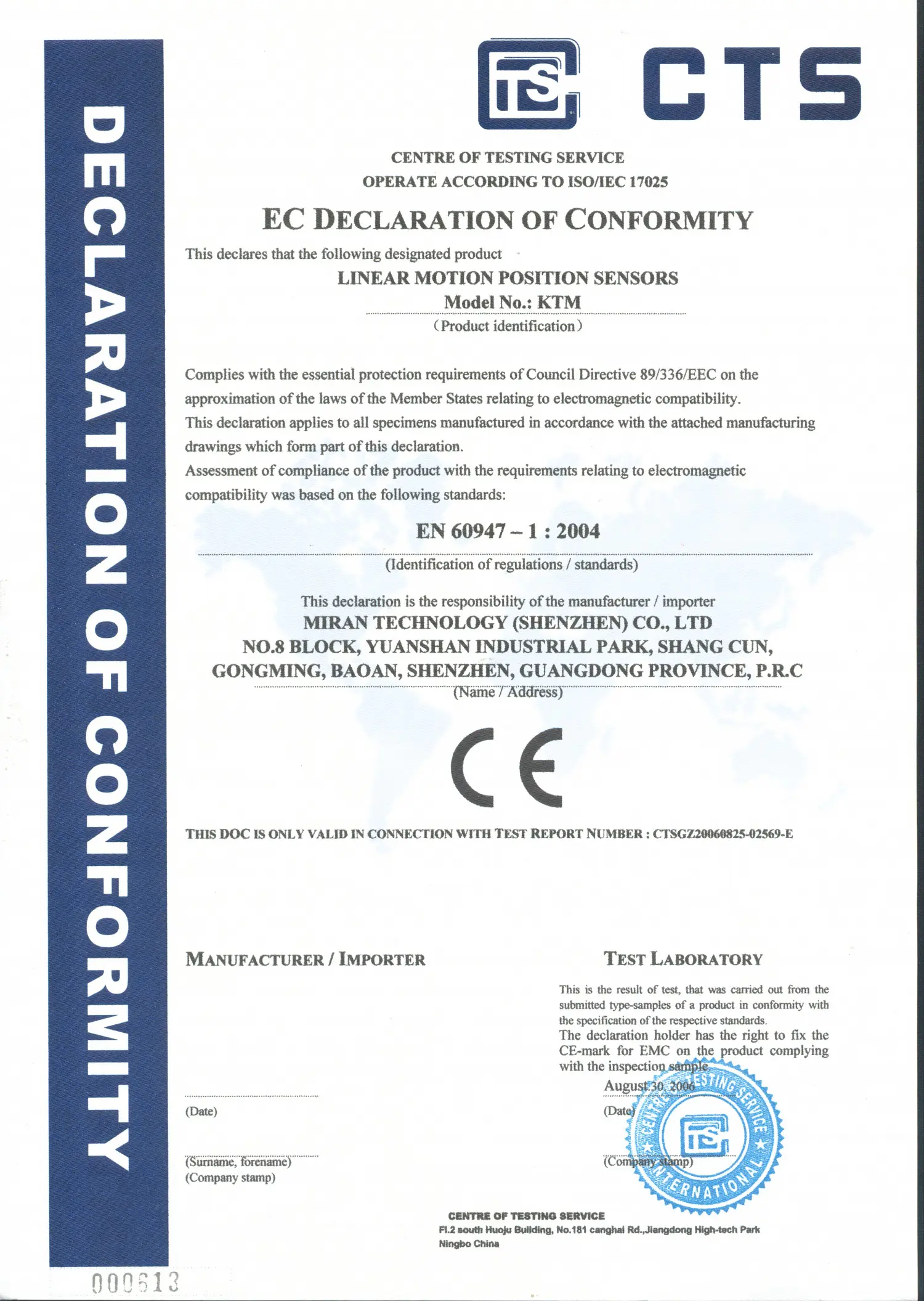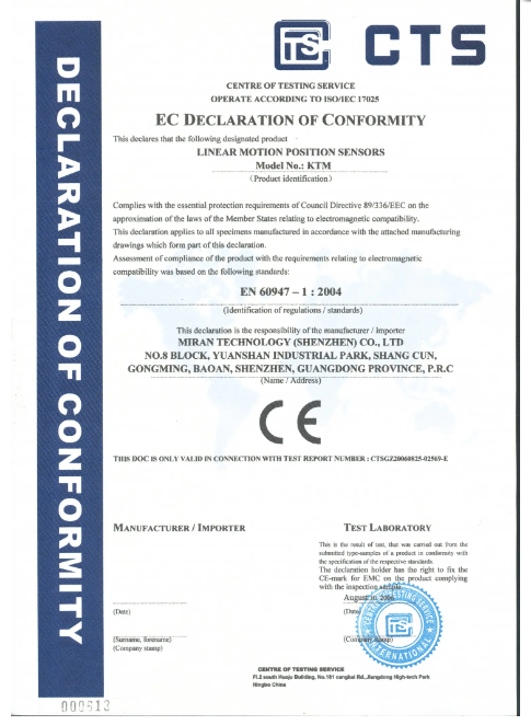 KTM直線位移傳感器CE認證證書Product introduction 您現(xiàn)在的位置:首 頁 > 產(chǎn)品展示 > 產(chǎn)品詳情