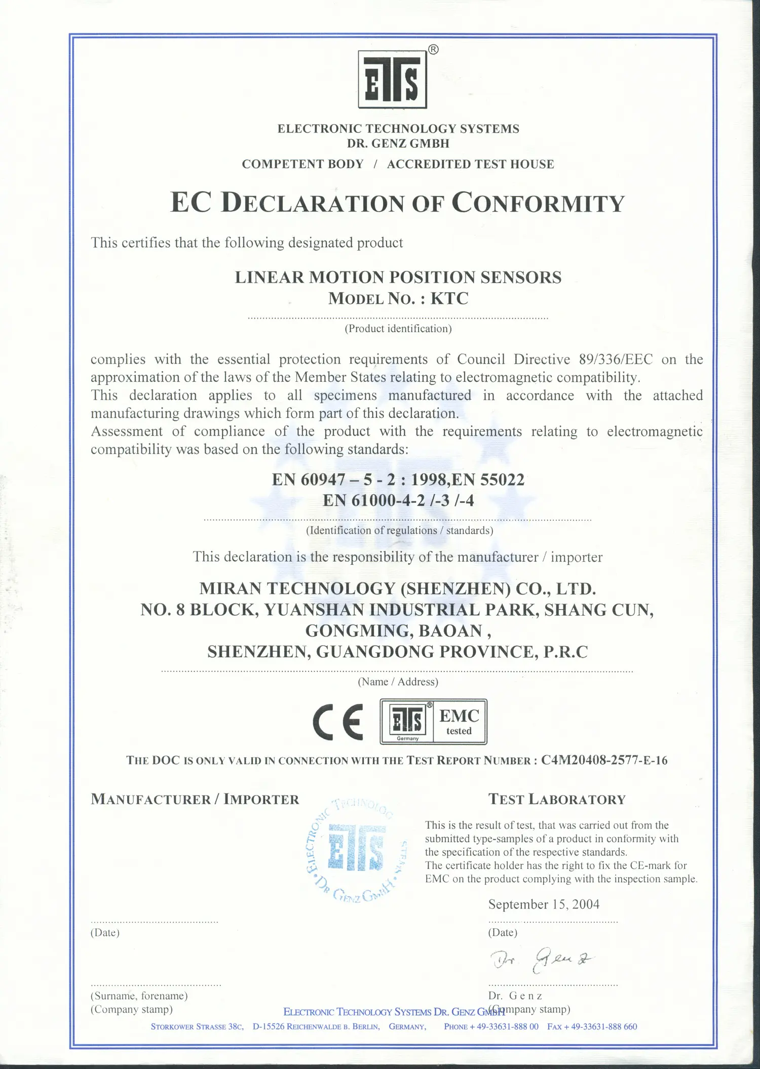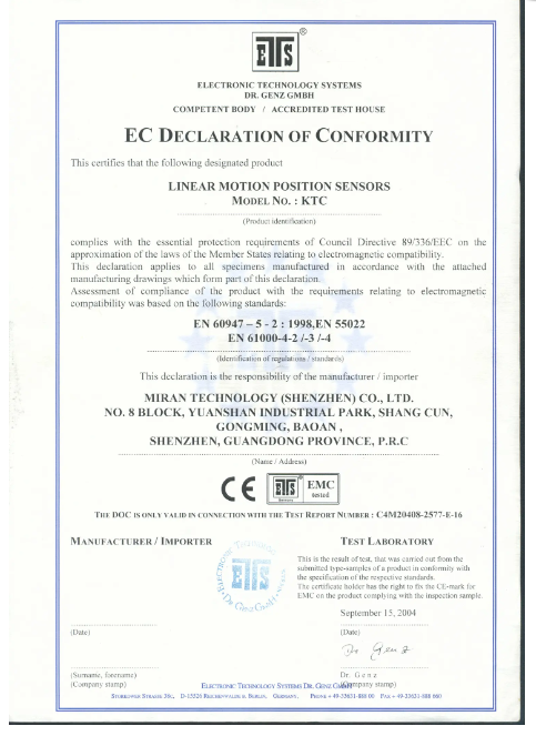 KTC直線位移傳感器CE認(rèn)證證書Product introduction 您現(xiàn)在的位置:首 頁(yè) > 產(chǎn)品展示 > 產(chǎn)品詳情