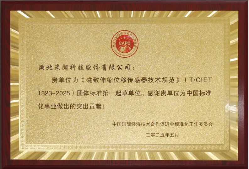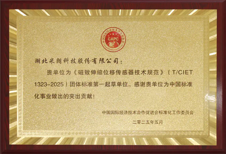 磁致伸縮位移傳感器標(biāo)準(zhǔn)起草證書