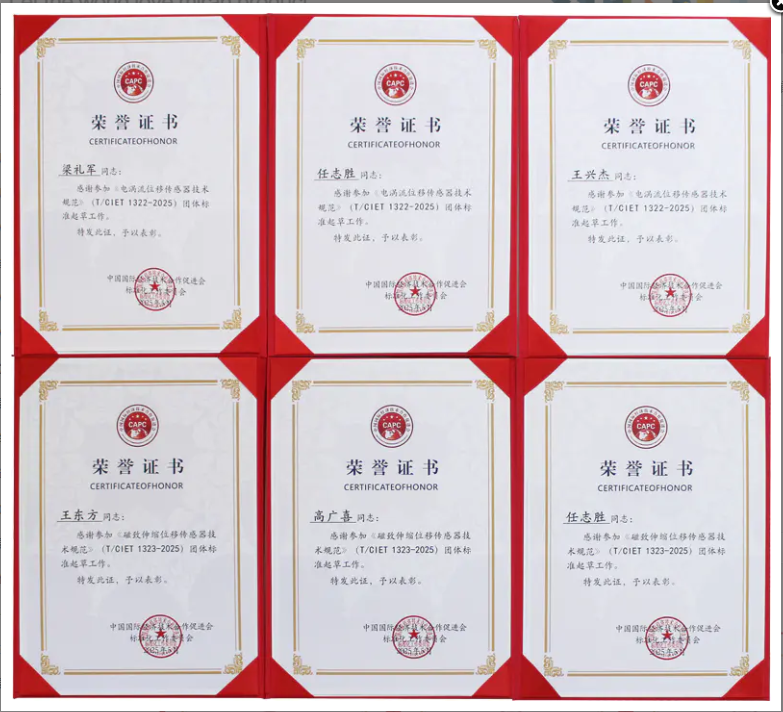 位移傳感器標(biāo)準(zhǔn)起草榮譽(yù)證書